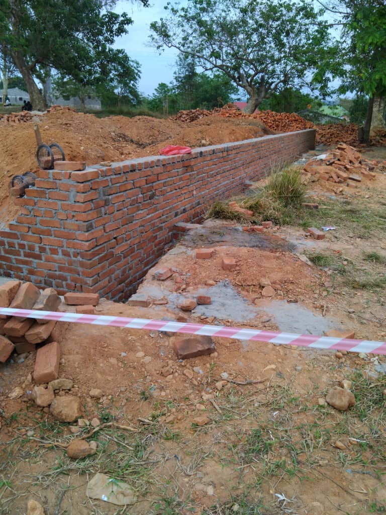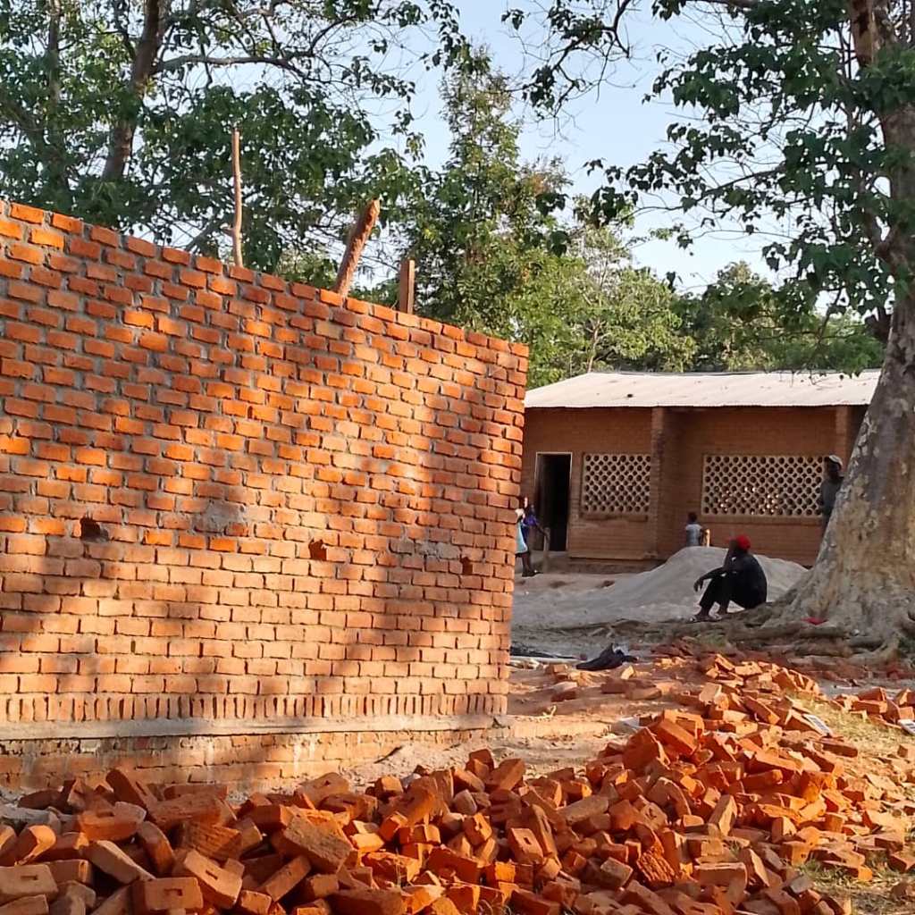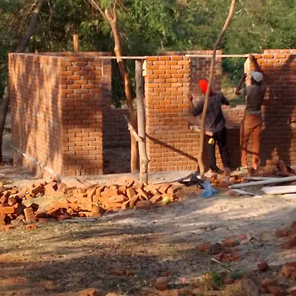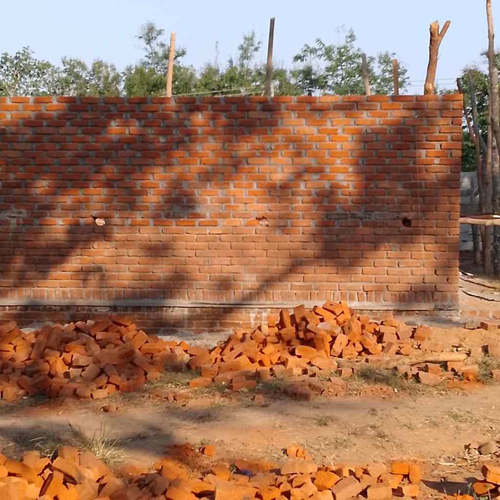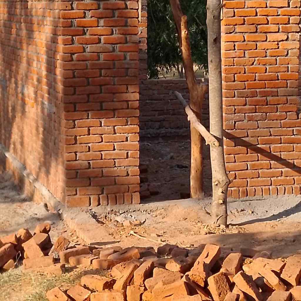 Update of the project. They are through with the walls building. Now they are waiting for roofing and they are constructing a toilet. attached are the of walls„
