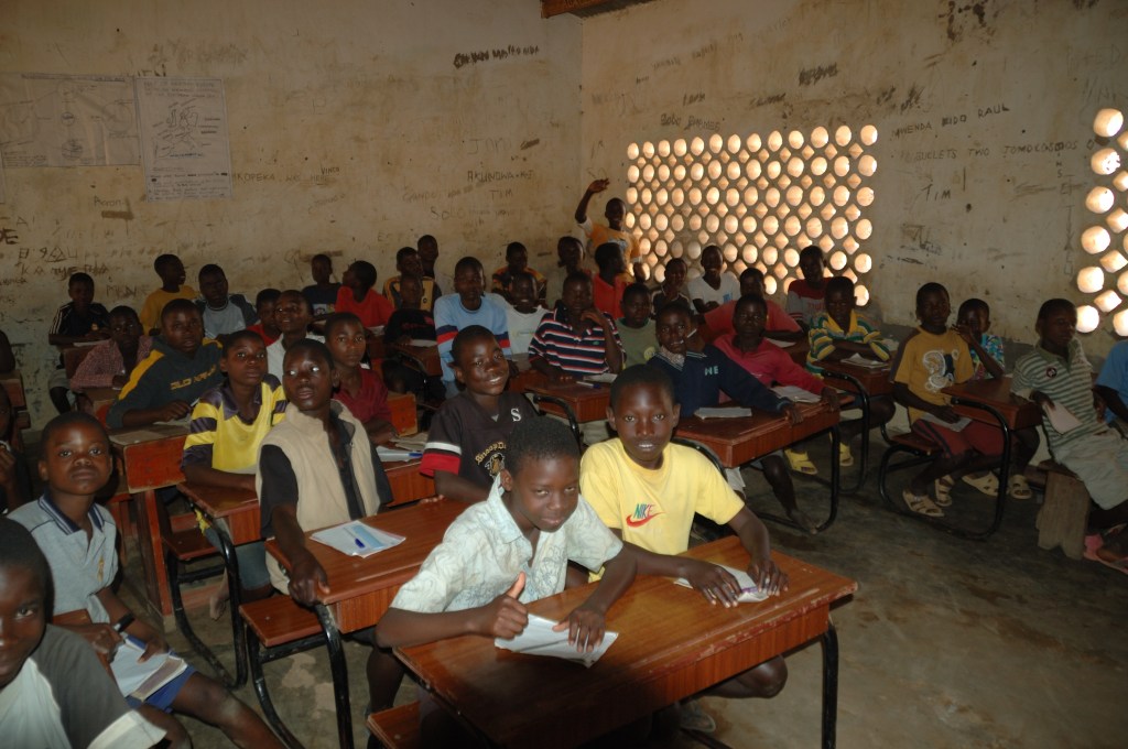 In 7 der 9 Klassenräume saßen jeweils zwischen 80 und 120 Kinder auf dem Boden, lediglich 2 Klassenräume verfügten über Bänke und Tische. Nicht selten fand der Unterricht im Freien statt, möglichst unter einem schattigen Baum.